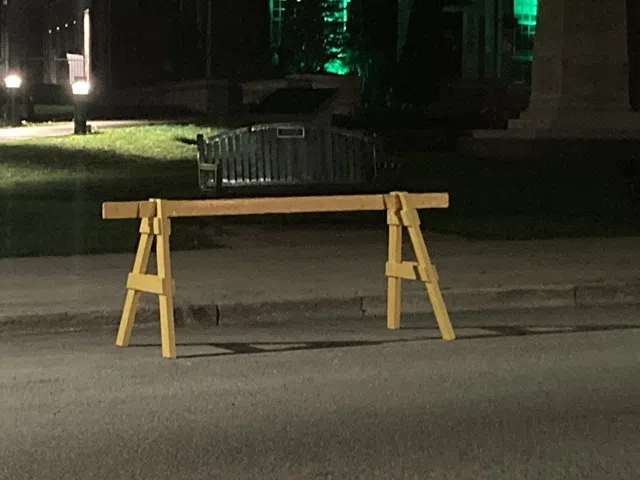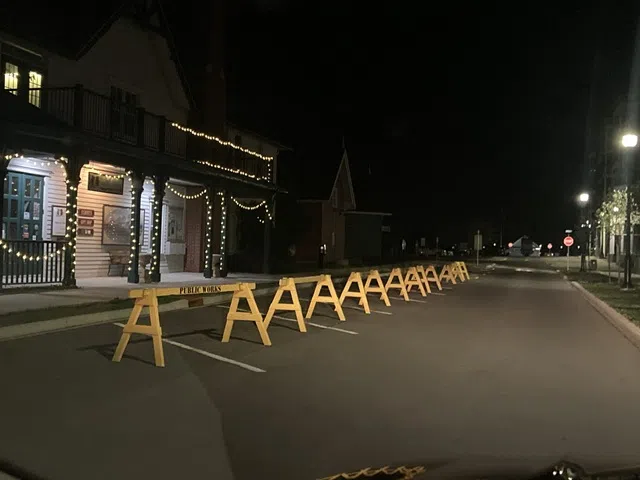 Barricades have been put into place in parking spots near Town Hall Park and near the 1000 Islands History Museum.