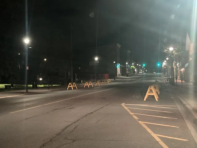 Barricades have been put into place in parking spots near Town Hall Park and near the 1000 Islands History Museum.