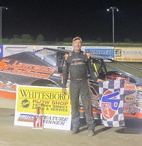 Shaun Shaw had a great car in the early laps of the Whitesboro Plow Shop DIRTcar 358 Modified feature as he led early over Scott Webb and Tim Fuller. Shaw was fast but Tim Fuller was on the move to second, then ran down Shaw for the lead. On lap 9 Scott Webb and Billy Dunn tangled, forcing Dunn to have to restart at the back of the field, but he didn’t stay there for long. When the green flew Shaw remained in front but Tim Fuller had a full head of steam on the outside lane and charged by Shaw for the top spot on lap 11. In the meantime, Dunn, the points leader, was on the charge and in 4 laps made his way from 11th to 5th and did not stop there as Fuller continued to pull away, while Shaw and Webb continued to complete the top 3. Billy Dunn was charging forward and would grab third from Webb then go by Shaw for second as he experienced an electrical issue forcing him to the pits. Over the final 9 laps Tim Fuller put it on auto pilot and was well in front to secure his second win of the year and 49th of his Modified career at Can Am. Dunn crossed in second ahead of Scott Webb, Ryan Bartlett and Tristan Draper.