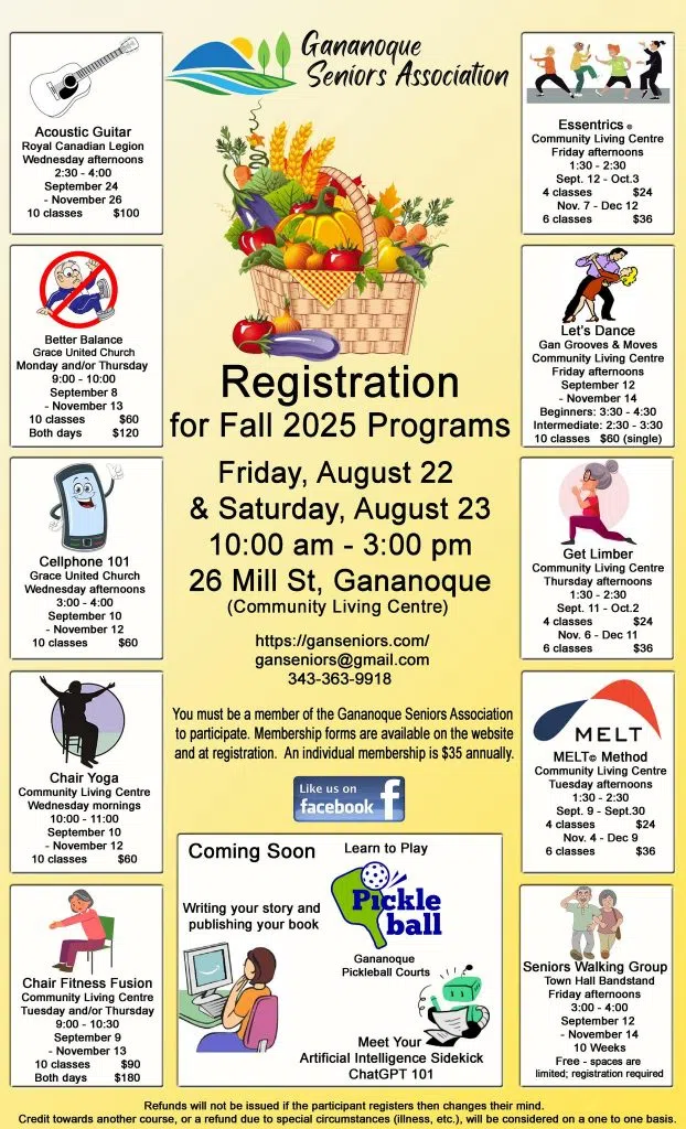 If you are a senior living in the region the Gananoque Seniors Association has plenty of programs available and sign ups are this weekend. So what is being offered this year? Here is Tanis Wilson with a sample of what they have available.