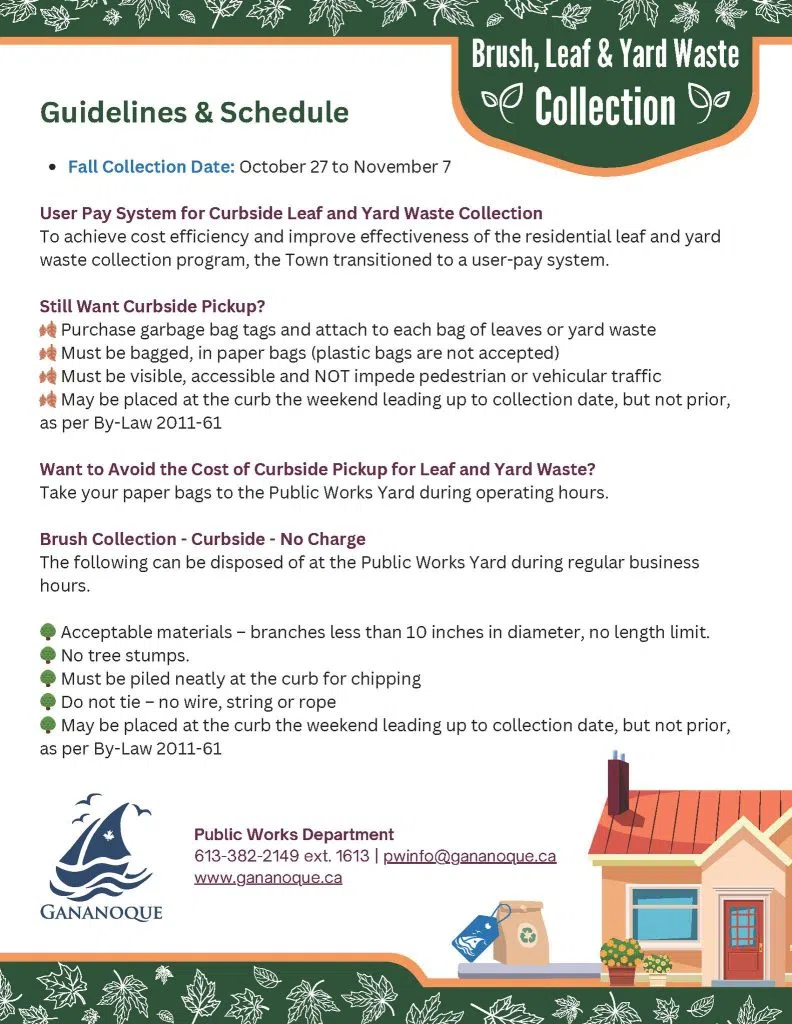 Gananoque’s brush and yard waste collection wraps up this week